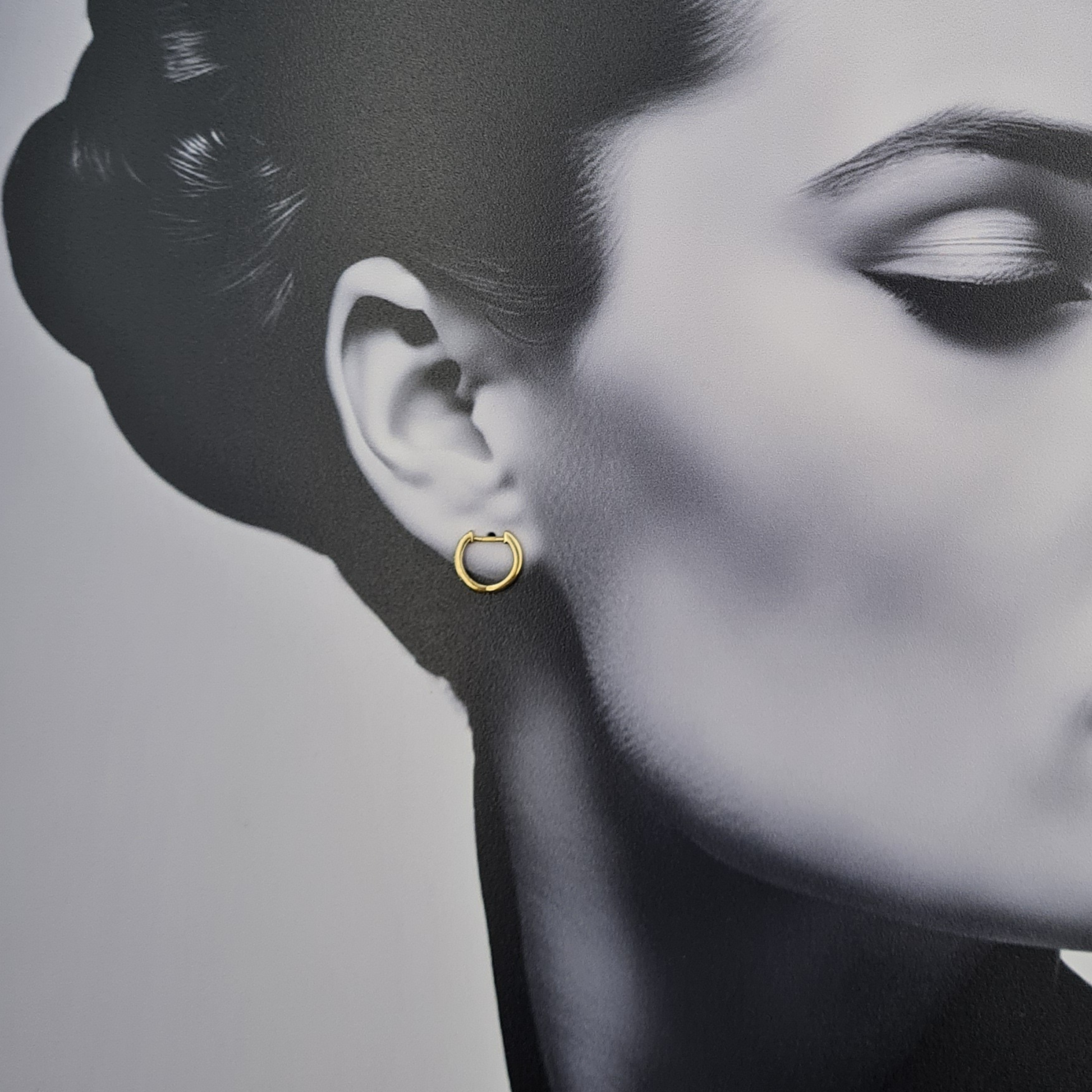 Closure: Hinged huggie fastening