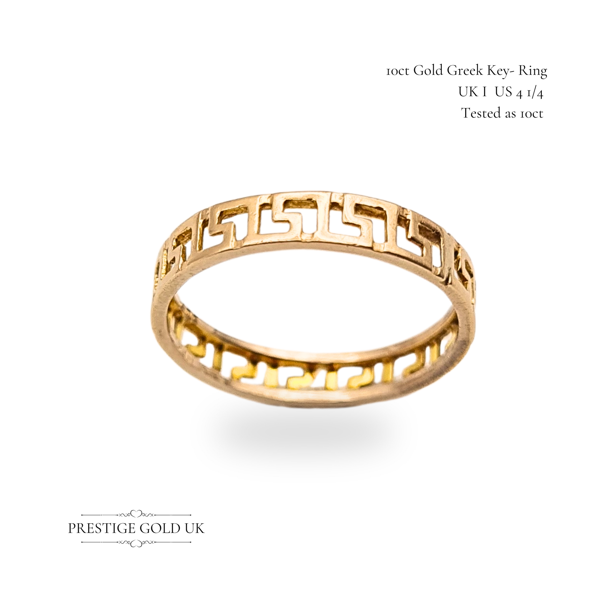 10ct Small Gold Greek Key Ring UK I US 4 1/4 Minimalist Openwork Cut Out Pattern