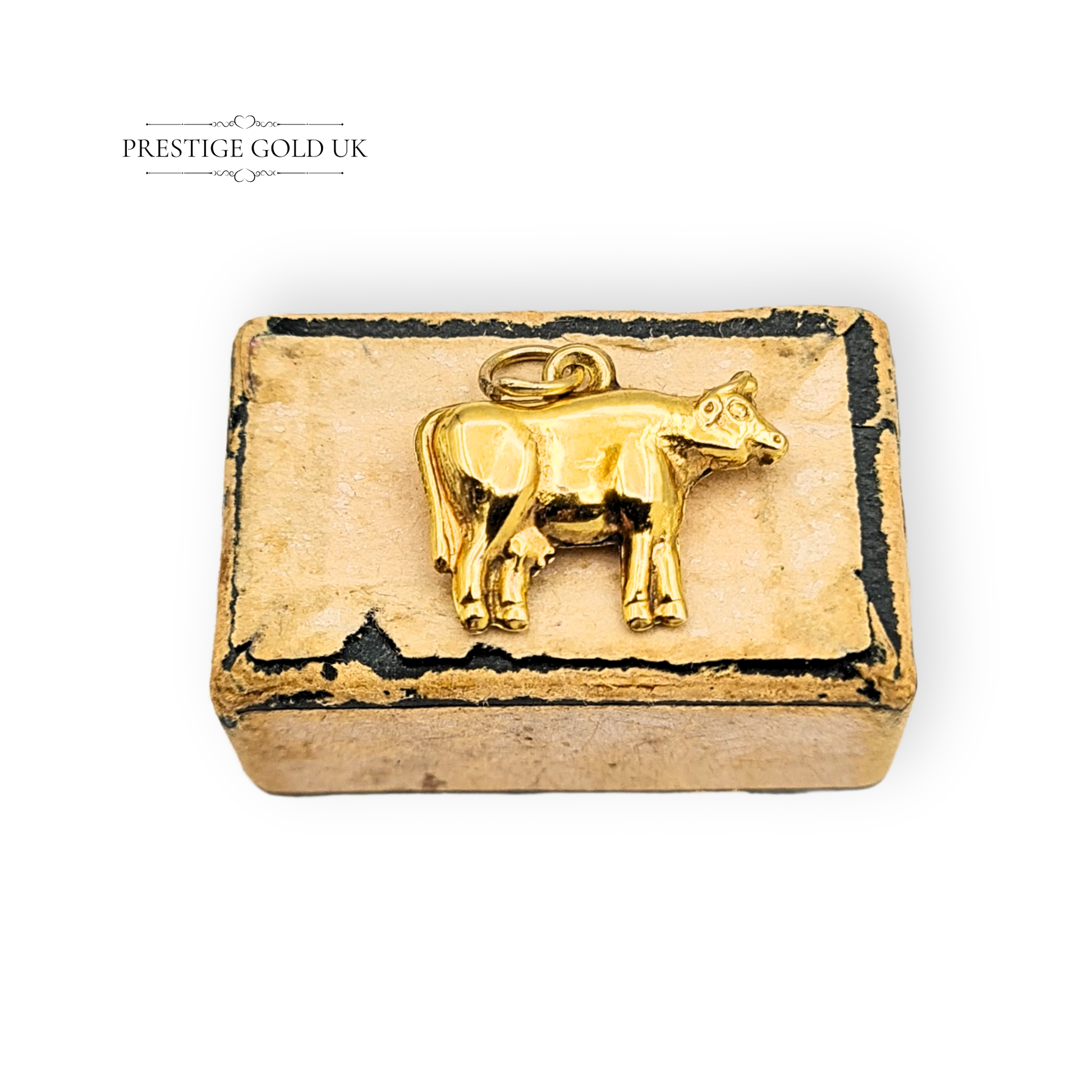 9ct Gold Cow Charm, 1970's Puffy Miniature Farm Animal Pendant