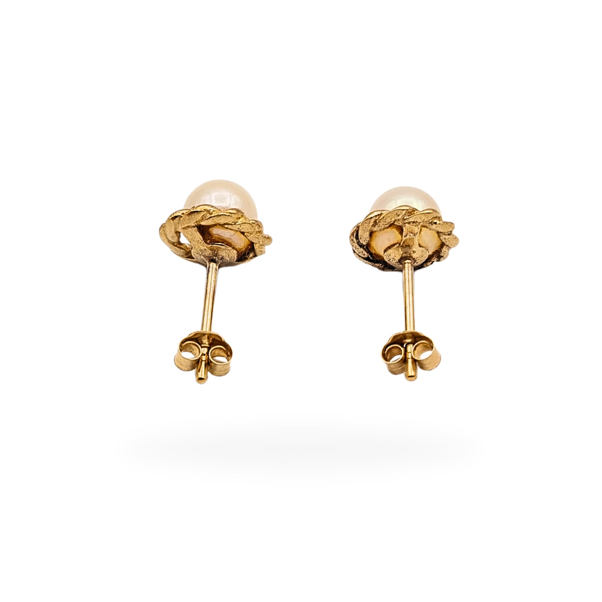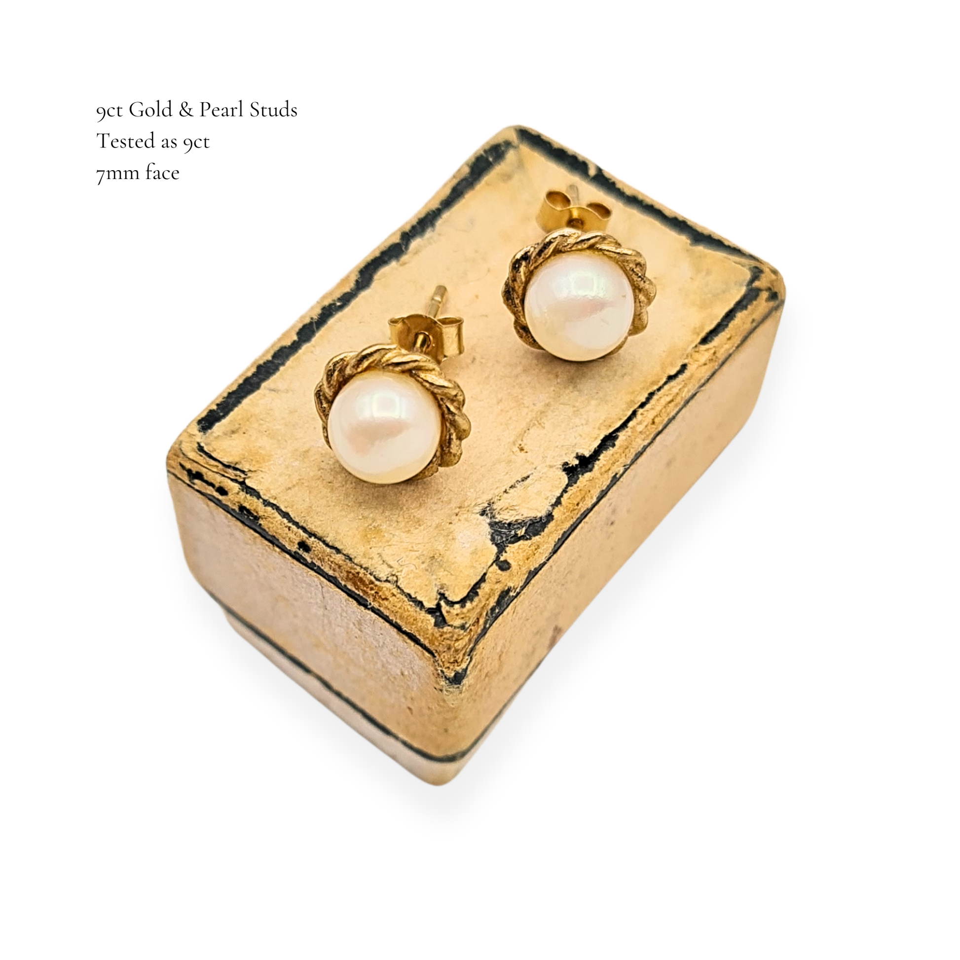 9ct Gold Pearl Stud Earrings, Rope Edge, Dainty Jewellery