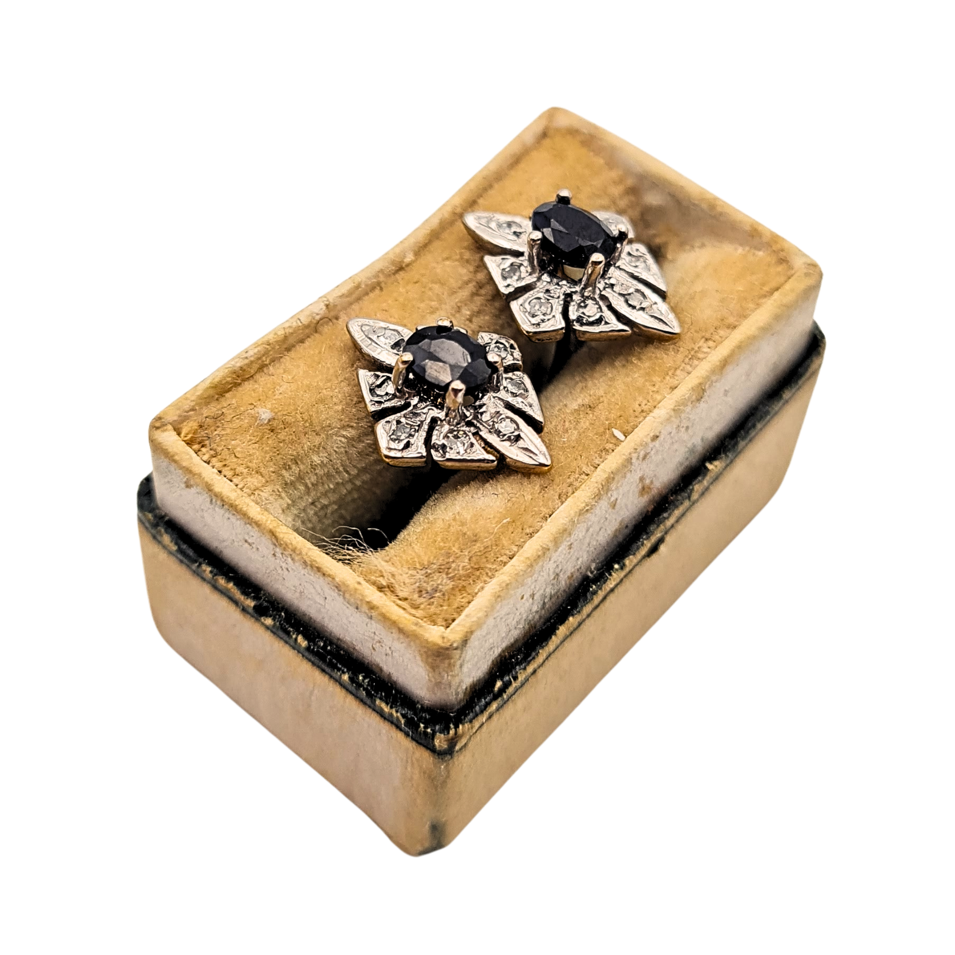 White-toned settings enhance contrast against the deep blue stones and yellow gold posts. Compact 11 x 8mm face with elegant sparkle, ideal for daily wear or refined evenings. Only one pair available.
