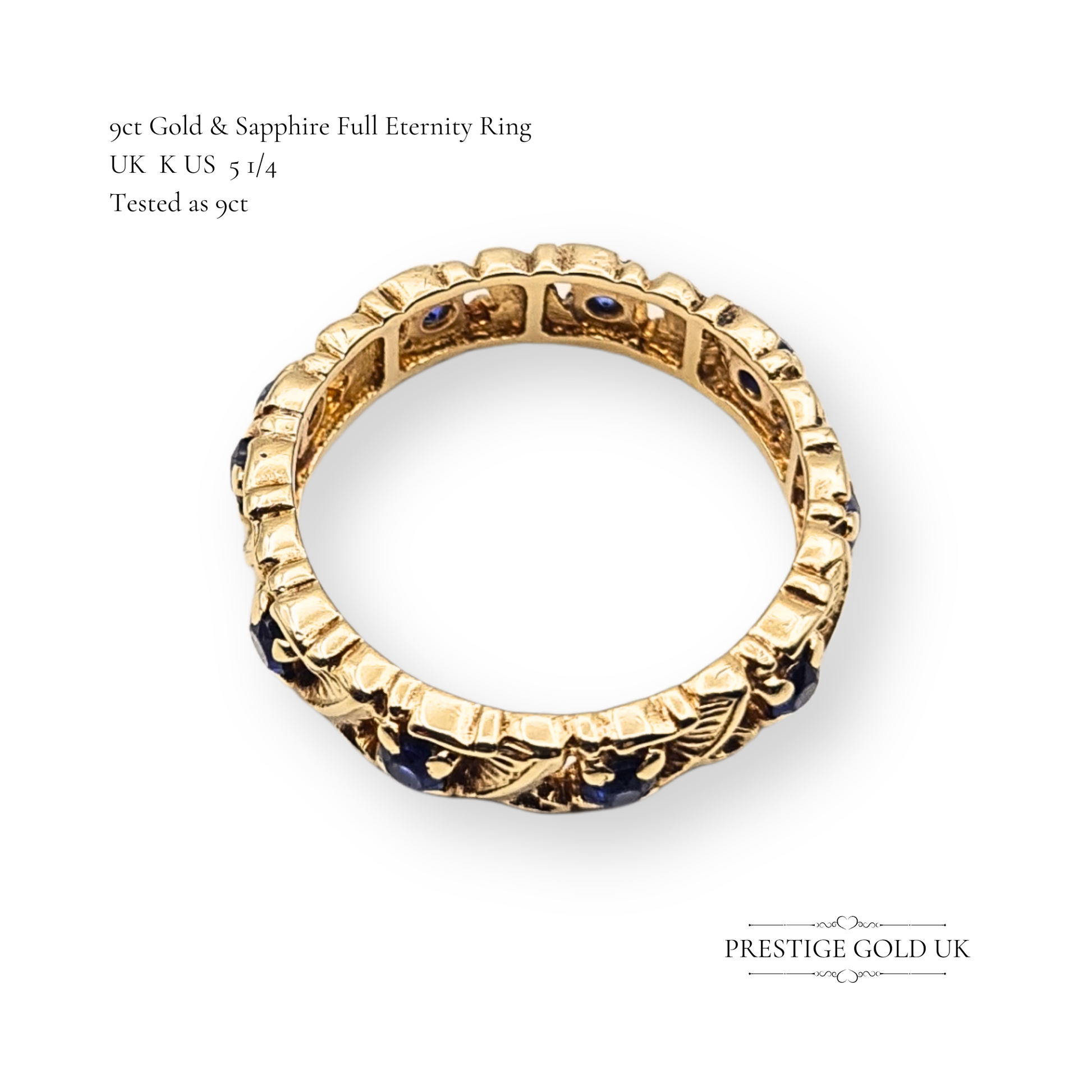 Quality 9ct Gold Sapphire Full Eternity Ring, Ornate Openwork, UK K US 5 1/4