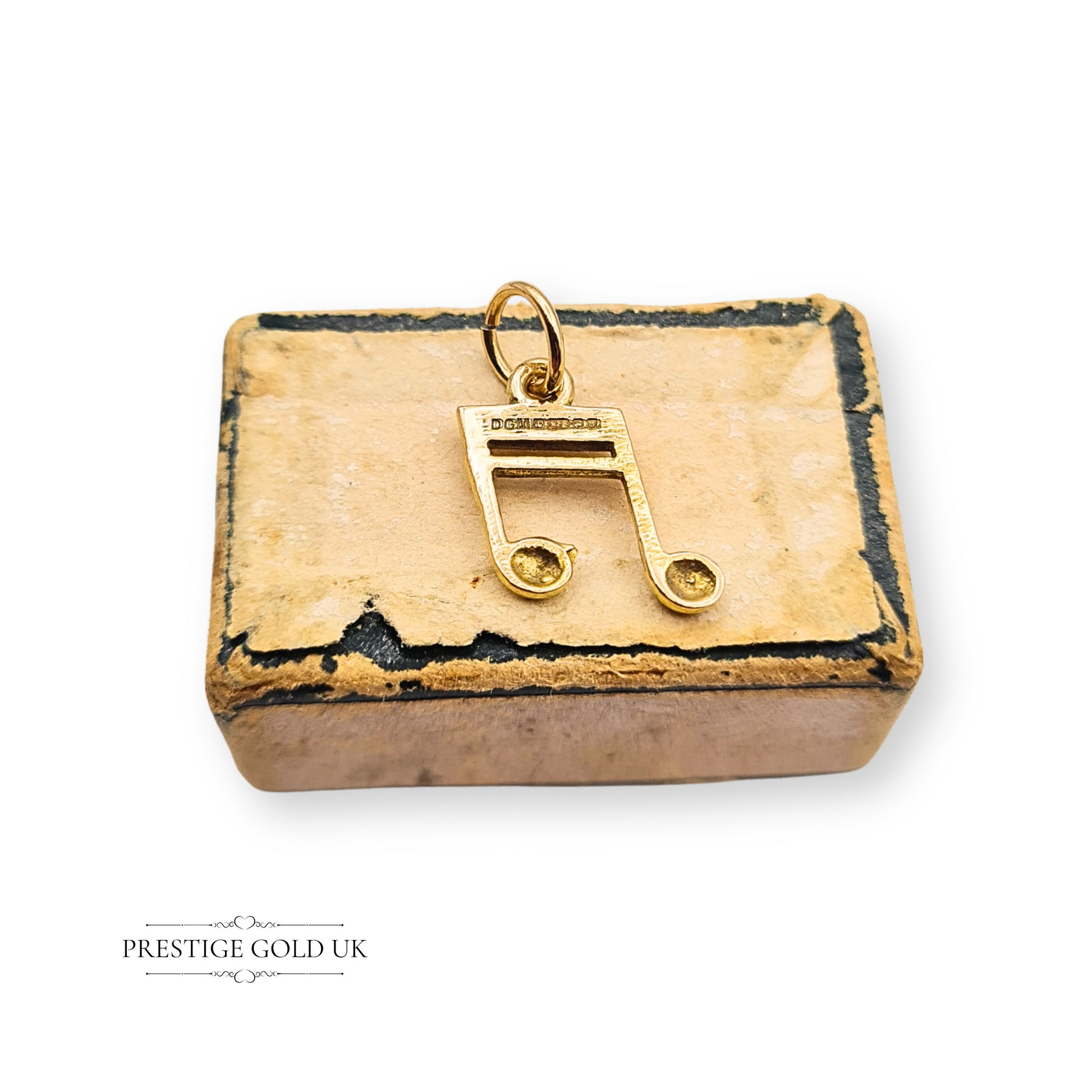 Hallmarked in London in 1998, this vintage 9ct gold musical note charm is a delightful miniature at just 12mm tall, 7mm wide and 1.5mm thick, weighing 0.5g. Cast in solid gold and designed as a quaver (beamed pair of notes), it makes a playful nod to music while remaining versatile enough to wear daily on a bracelet or as a pendant. Whether gifted to a musician or added as a one-off piece of vintage gold jewellery. Only one available.