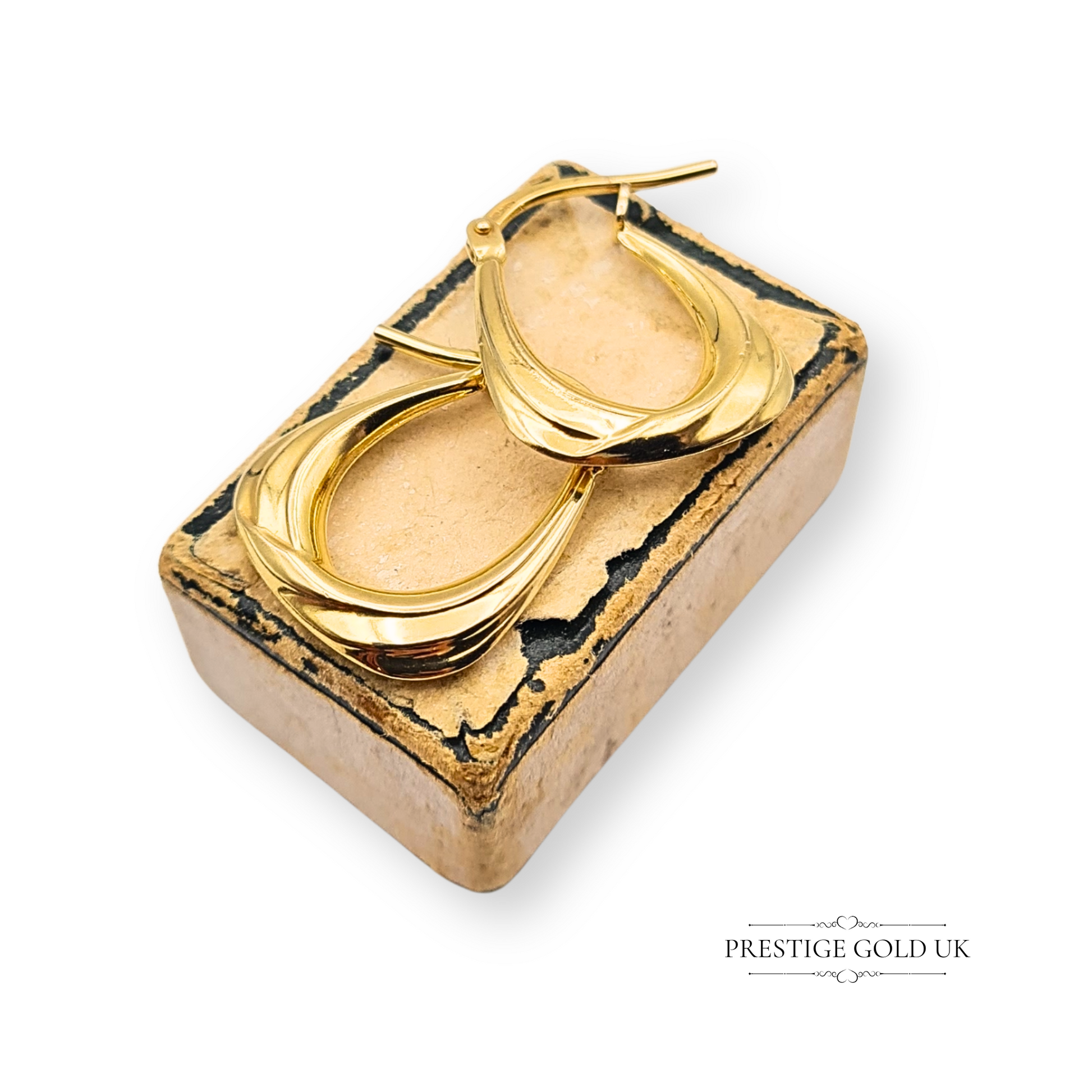 9ct Gold Hoop Earrings, Vintage Square Flat Bottom Hoops