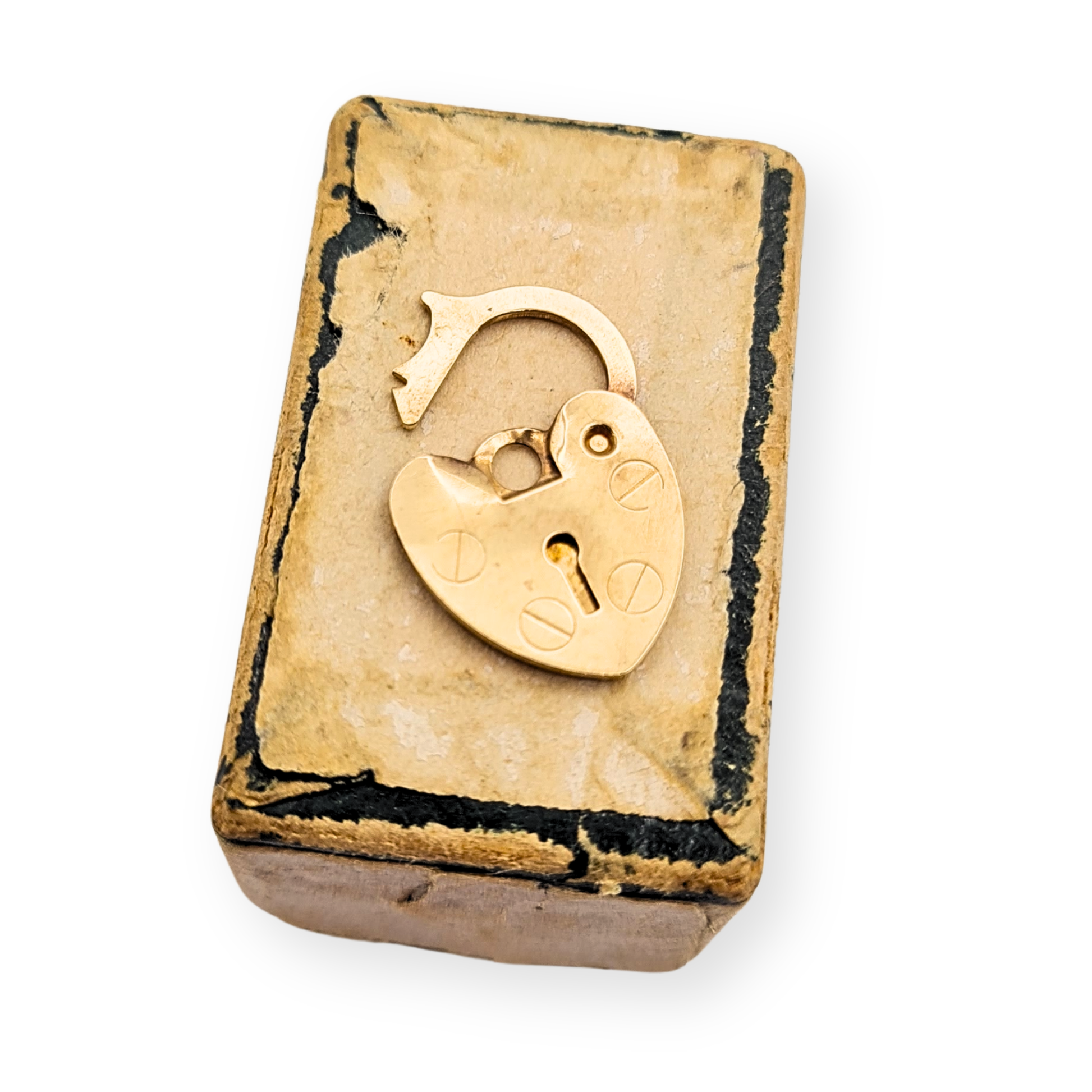 Stamped 375 and fully tested for 9ct gold, this dainty heart-shaped padlock weighs just 0.33g and measures approximately 13mm tall by 10mm wide with a slim 0.5mm profile. Its petite form makes it ideal for a fine charm bracelet, a delicate pendant, or as a replacement clasp for lightweight chains. A charming, genuine 9ct gold piece that feels effortlessly elegant despite its tiny size. Only one available.