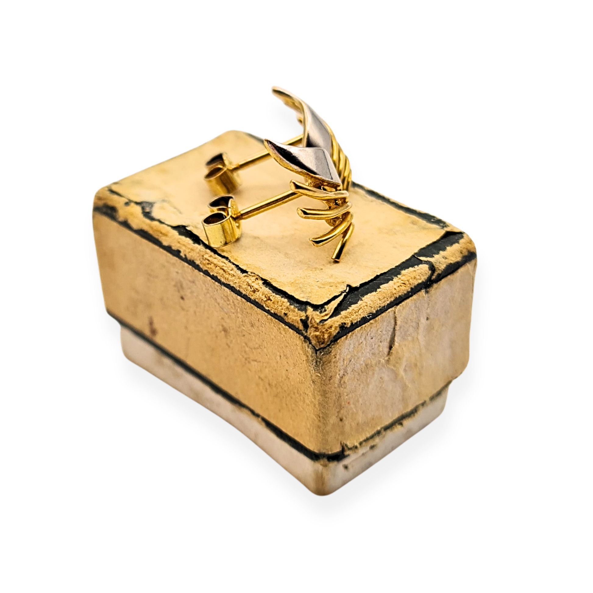 Fully hallmarked for British 9ct gold, these graceful two-tone earrings combine white and yellow gold in a sweeping wing-like form. Measuring approximately 11mm by 8mm and weighing just 1.06g, they’re beautifully lightweight yet substantial enough to stand out with elegant detail. Their sculptural curves catch the light from every angle, adding subtle movement and depth. A refined choice for everyday wear or evening occasions alike. Only one pair available.