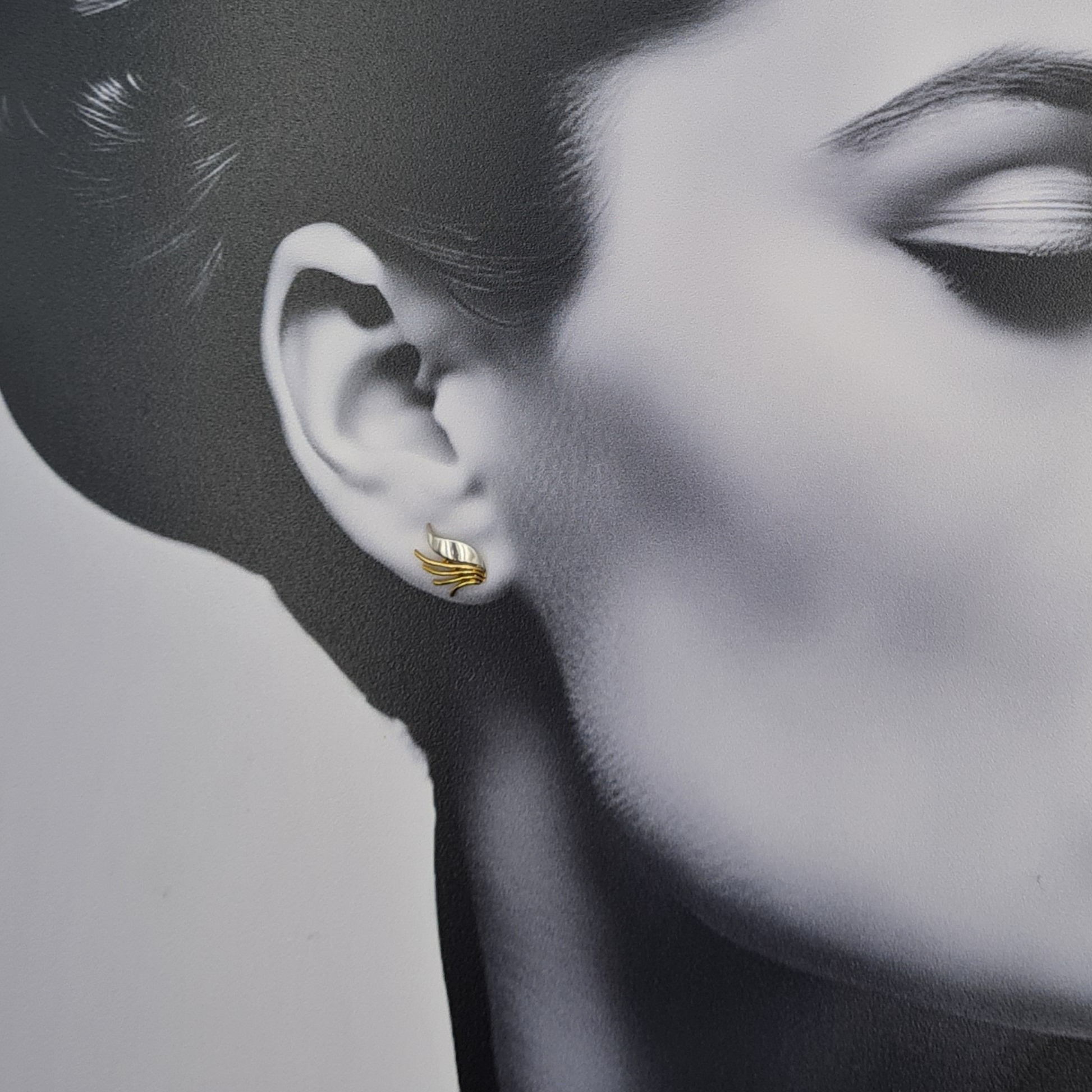 9ct Two Tone Gold Angels Wings Stud Earrings