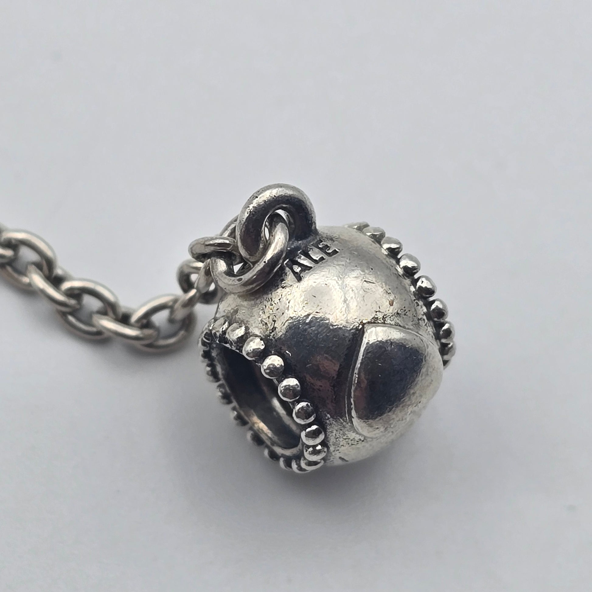 This authentic Pandora safety chain is crafted in solid sterling silver with an embossed heart design and sparkling CZ stone detail, carrying the ALE 925 hallmark of genuine Pandora craftsmanship. Measuring 66 mm in length and weighing 5.62 grams, it adds both security and elegance to your Pandora charm bracelet, ensuring your charms remain safely in place. Only one available.