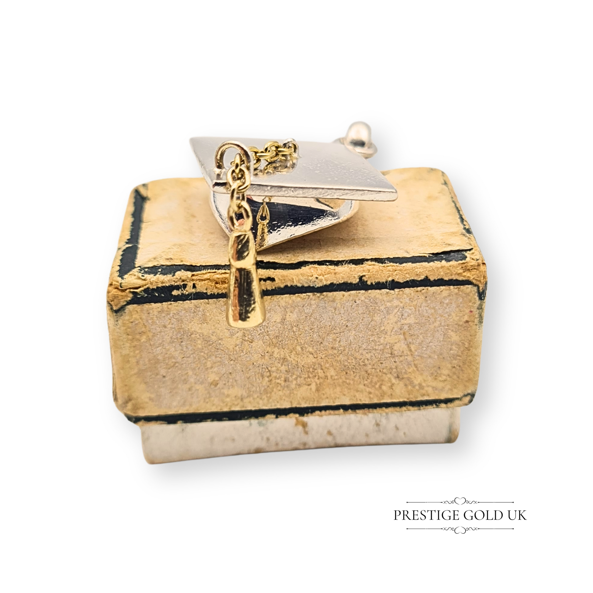 Weighing 5.0g and stamped 925, this solid silver Links of London graduation cap charm is crafted in the form of a classic mortarboard, complete with a detailed tassel. A thoughtful piece for celebrating academic milestones, it can be worn as a pendant or added to a bracelet or charm collection. A distinctive Links of London design, ready to gift or wear. Only one available.