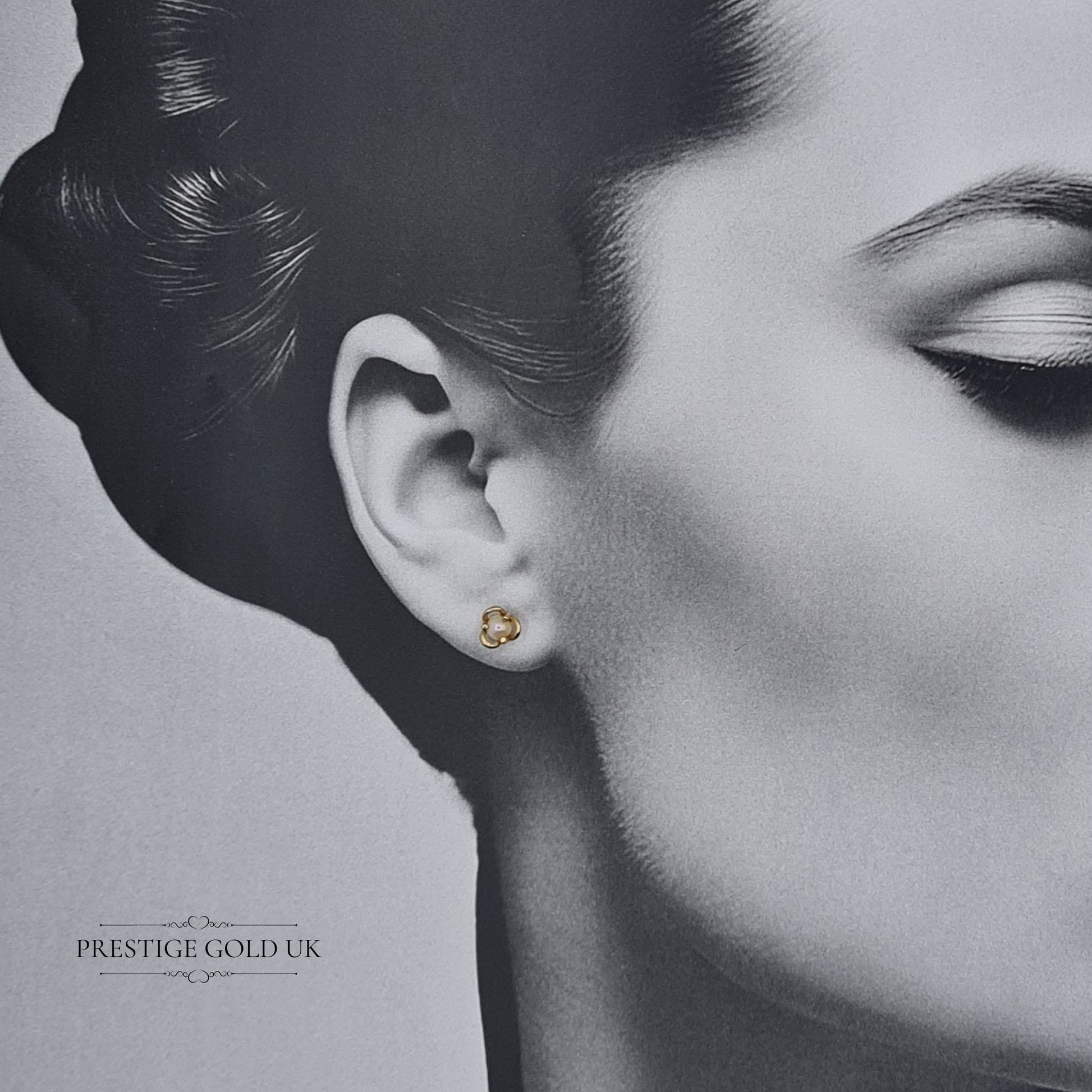 These elegant 9ct gold stud earrings feature delicate 3mm cultured pearls set in a timeless vintage-style design. With secure butterfly backs, they are lightweight and comfortable for everyday wear. Stamped 9ct and fully tested, these earrings are a perfect blend of sophistication and simplicity, making them an ideal gift or an elegant addition to any jewellery collection. Only one available—vintage and unique.