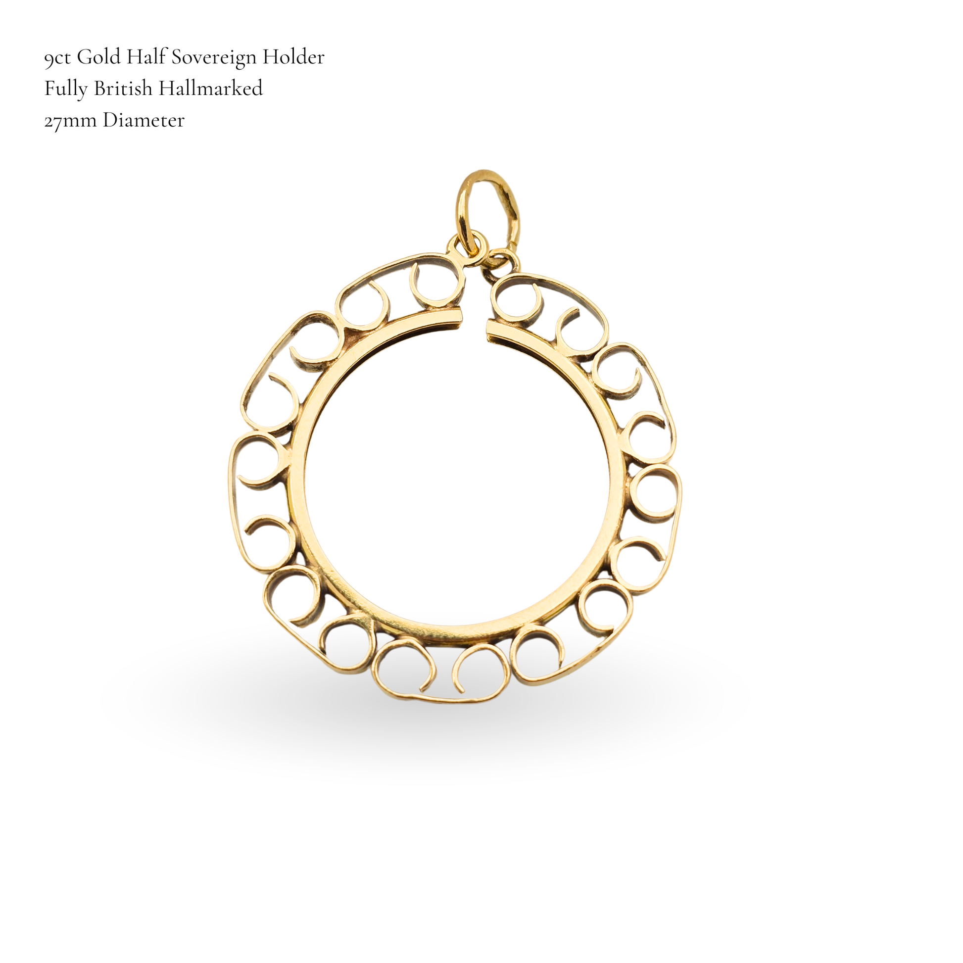 9ct Gold Half Sovereign Mount with Scroll Edge Design